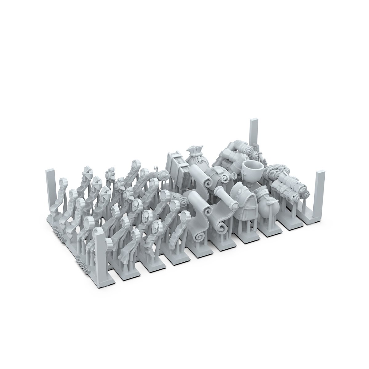 Set of commemorative order seals and scrolls to hang on a miniature’s belt or chest. The seals are ideal for 40k, while the scrolls are very versatile and can be used on minis from different games or placed on bases and scenes as atmospheric details.