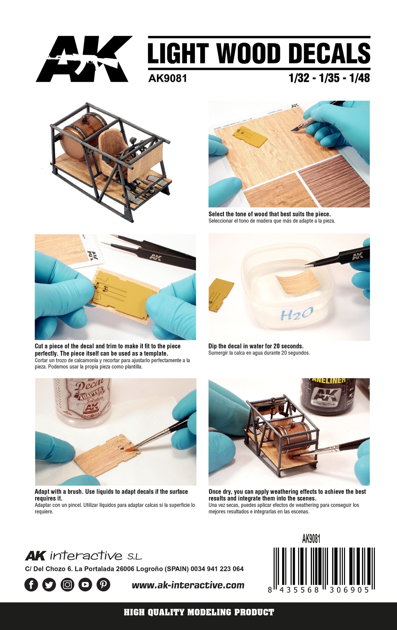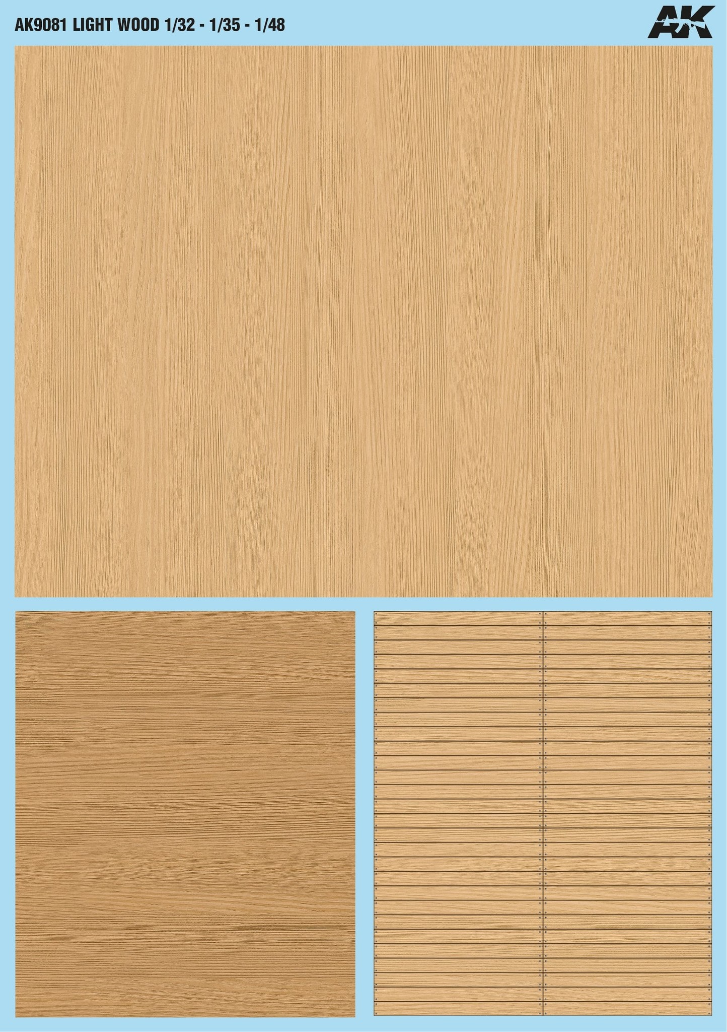 Set of light wood decals size A5. Printed in the most high quality by Cartograf simulating a fine wood grain planking texture.