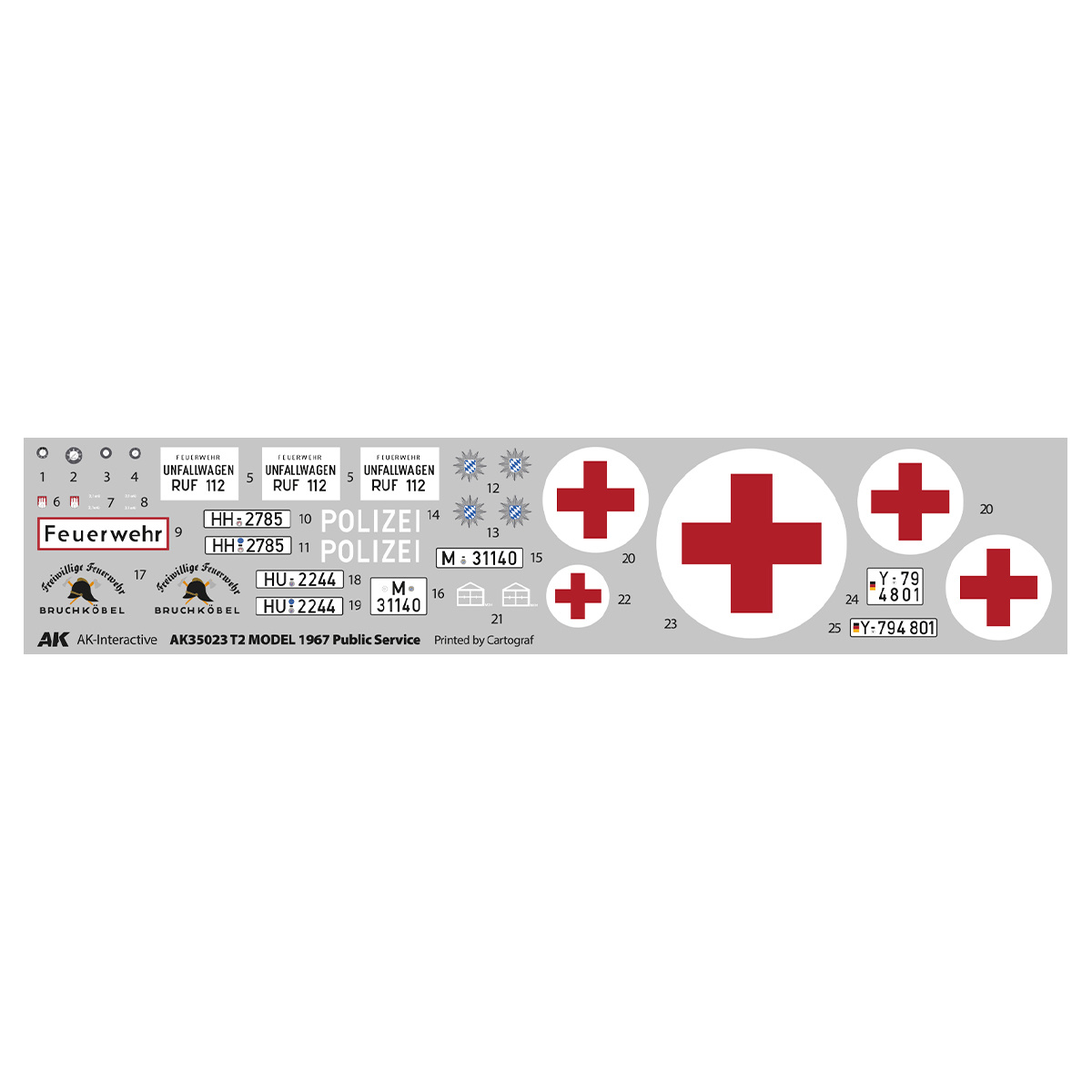 The reference AK35025 represents the closed version of the vehicle with external modifications introduced in 1972. The highlight of this model is a large decal sheet including markings for 5 colorful vehicles used by various private companies from the 1970s until today.