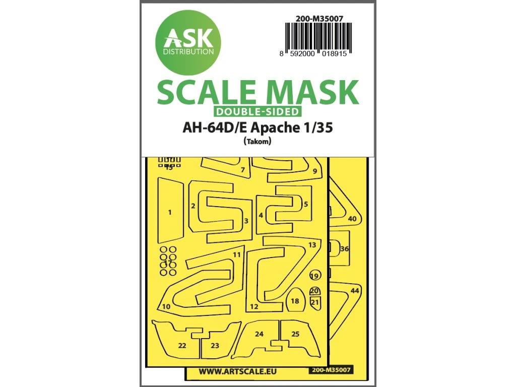 1/35 AH-64D/E Apache - double sided Kabuki camouflage foil with print for clear parts and wheels by Takom.Catalog number 200-M35007 in excellent quality, the best technological production of the foil section.