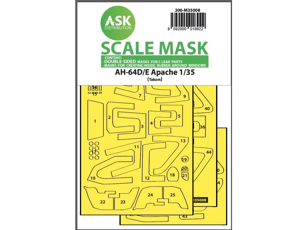 Double sided camouflage foil including mask for inner white rubber trim of cockpit framing. Kabuki printed for clear parts and wheels by Takom. Catalog number 200-M35008 in excellent quality, best technological production of foil cross section.