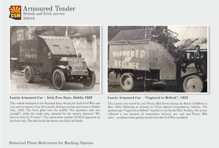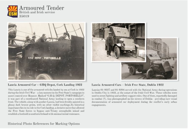 Highly detailed plastic injection model kit representing the British Armoured Tender as used by the RAF Armoured Car Companies in the Middle East during the 1920s. These vehicles served in operations across Iraq and Kurdistan, performing patrol, escort, and security duties in challenging desert conditions.