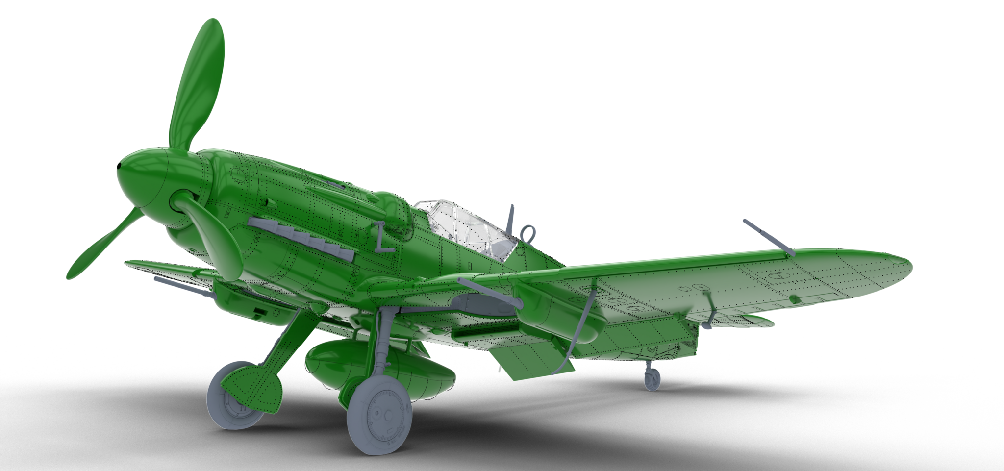 3D printed parts: cockpit, wheel bays, wheels, exhausts, gun barrels