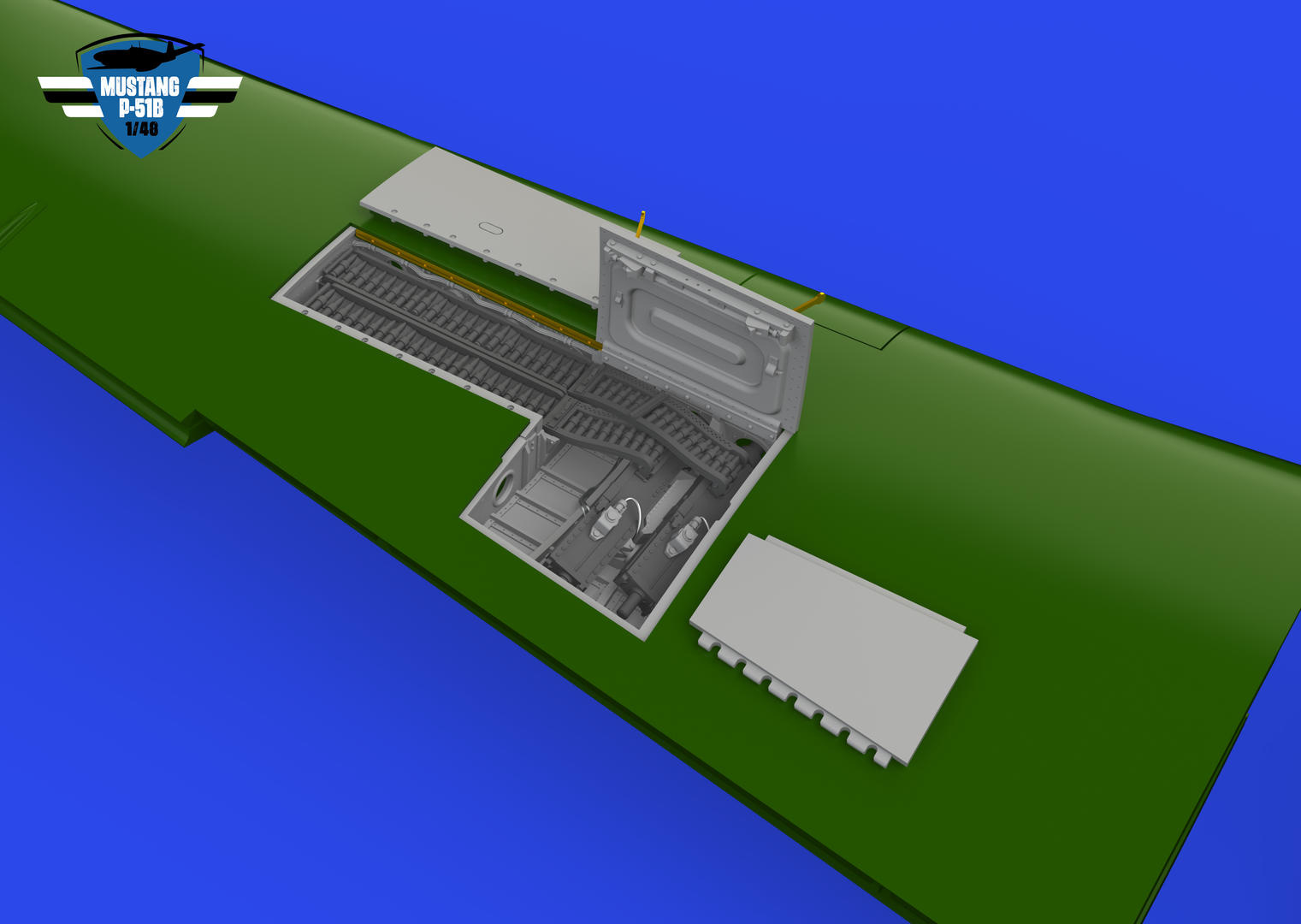 Brassin set gun bays for P-51B or P-51C in 1/48 scale.The set consists of gun bays for both wings.Made by direct 3D printing.Recommended kit: Eduard Set contains: