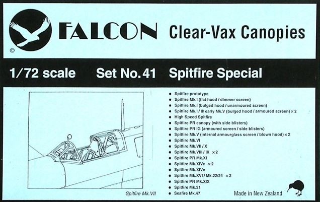 Falcon - Clear-Vax Canopy Set No. 41 - Spitfire Special - 1:72