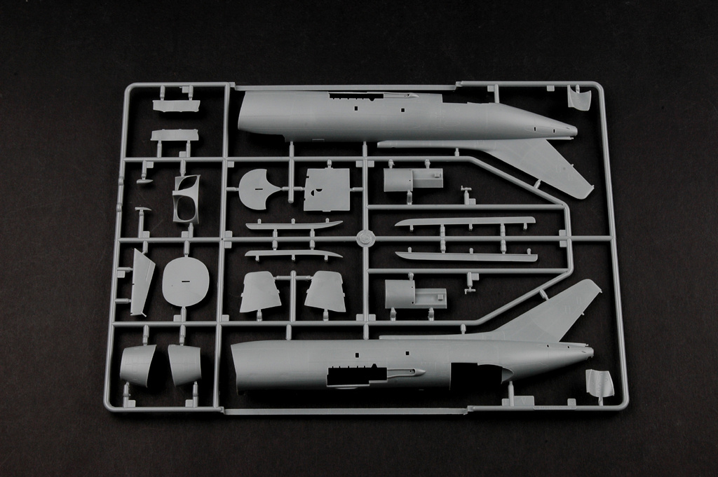 Production of the Yak-38 Forger began in 1975 making it the world’s second operational VSTOL aircraft, after the Harrier series. The aircraft's wings are mid-mounted, delta-shaped with blunt tips and a negative slant. There is one turbo engine and two lift jets. There are two exhausts on the bottom of the rear fuselage. Large, semicircular air intakes are below the cockpit well forward of the wings. The fuselage is long and has a pointed nose and tapered tail section.