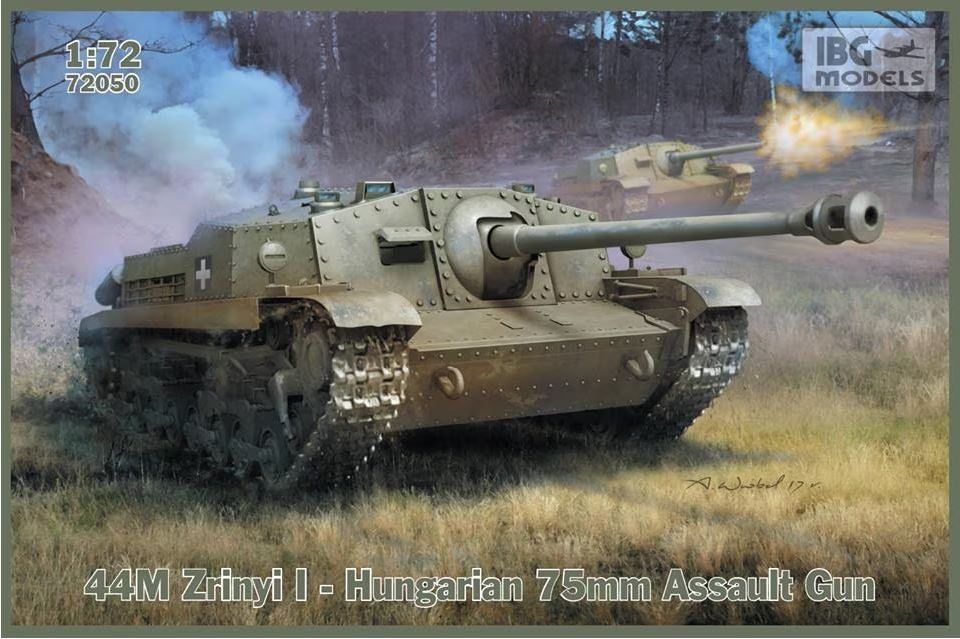44M Zrinyi I and 43M Zrinyi II were Hungarian assault guns based on the Turan tank chassis. 44M version was armed in a high velocity 75mm gun, it was supposed to fulfil a role of a tank destroyer. The prototype tests revealed some problems with the gun, which caused the development to last very long. Serial production was scheduled for the middle of 1944 and never started because of the Soviet occupation. 43M Zrinyi II was a assult howitzer armed in 105mm gun. Its production started in 1943 and 66 vehicles were finished before the Soviet occupation started.