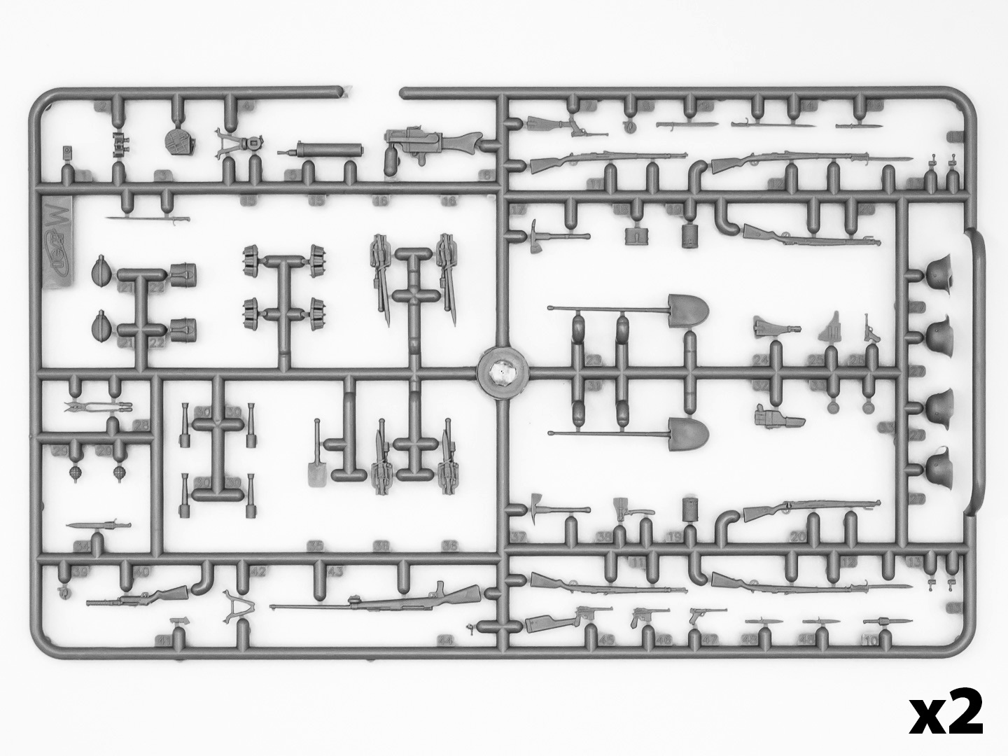 The set includes 40+146 parts for assembly 4 figures of German Infantry of 1914 period.