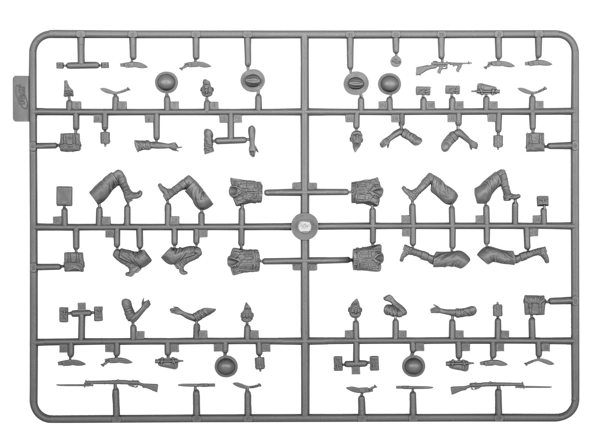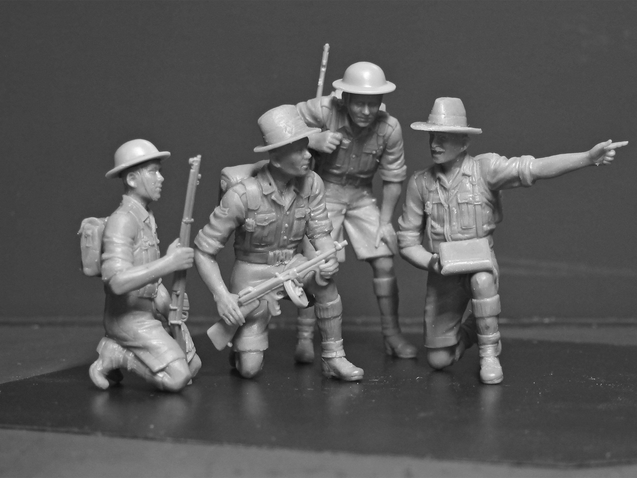 The set includes 71 parts for assembly of a figure of the British Officer and three figures of Gurkha Rifles of 1942-1944 period.
