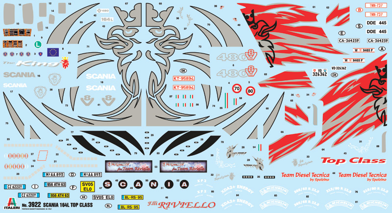 SUPER DECALS SHEET FOR 2 VERSIONS - ADHESIVE STENCIL - NEW TYRES - ADDITIONAL CHROMED PARTS AND WHEEL RIMS