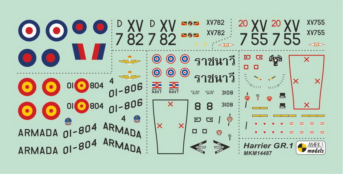 4) AV-8A Harrier (British Aerospace Harrier Mk.55), ex-VA.1 Matador, 161176 (ex-VA.1-8), Black 3108/8, No. 301 Sq., Royal Thai Navy (Kong Thap Ruea Thai), alternating between Royal Thai Naval Base U-Tapao and HTMS Chakri Naruebet (CVH-911), 1997