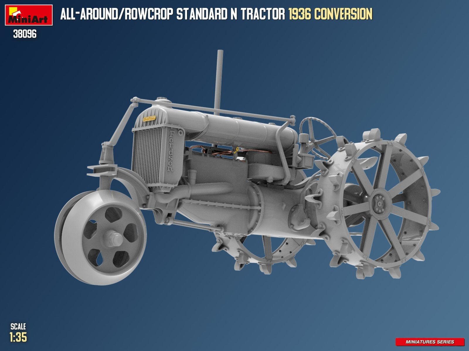 This 1:35 scale kit represents the Standard N tractor in an all-around/rowcrop configuration from 1936. The model shows the distinctive agricultural layout used before widespread military adaptation, making it suitable for rural scenes, pre-war settings, and conversion-based dioramas.