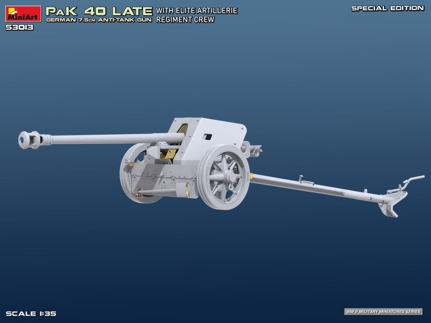 The 7.5cm PaK 40 was the backbone of German anti-tank defenses during World War II, capable of defeating even the heaviest Allied armor. This Special Edition kit depicts the late production variant, accompanied by a crew from an elite artillery regiment in dynamic combat poses. This 1:35 scale model captures the gun’s precise engineering and battlefield presence, complete with figures, ammunition, and realistic detailing perfect for diorama settings.