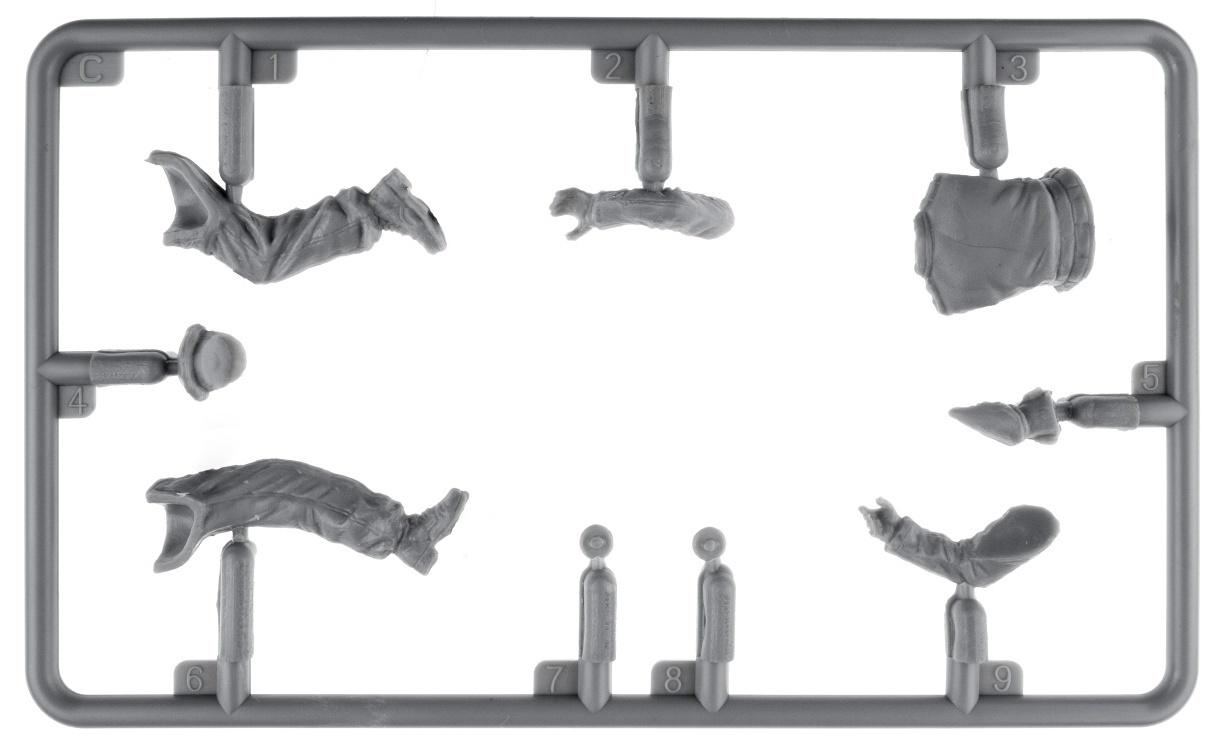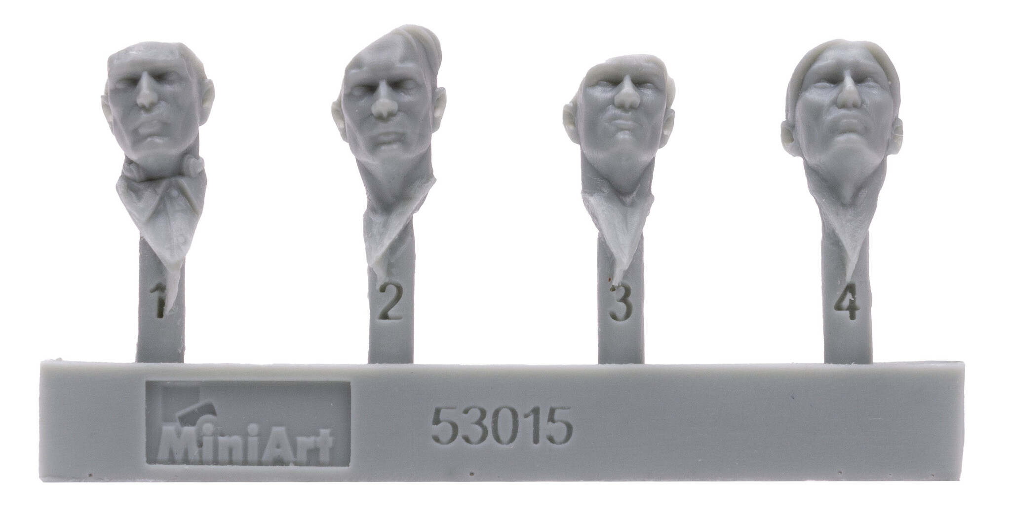 This 1:35 scale figure set features a group of four German Panzer crewmen in relaxed and seated poses, perfect for enhancing vehicle scenes or dioramas set in the Western Front during 1944.