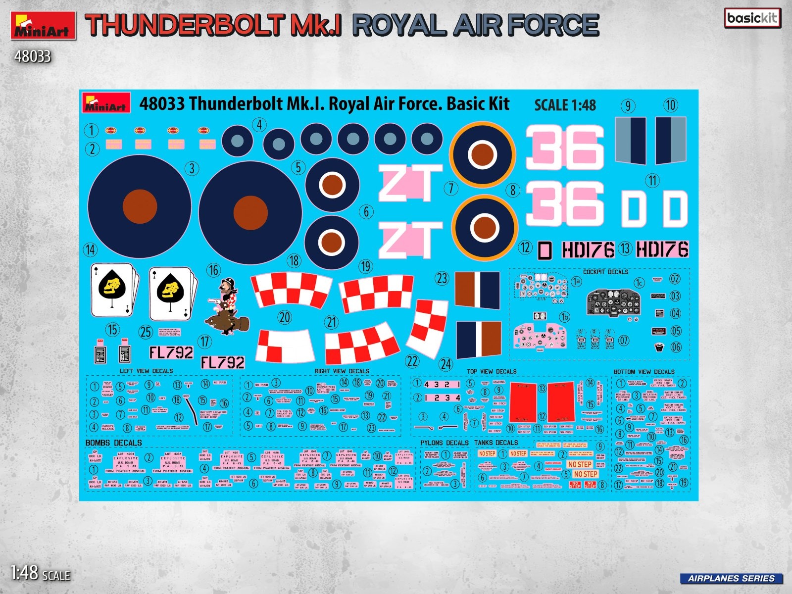 This 1:48 scale Thunderbolt Mk.I represents RAF-operated P-47 aircraft used during WWII. The kit captures the distinctive shape and details of early Thunderbolt variants in British service, making it a solid choice for historical builds and RAF-themed collections. The Basic Kit format offers a straightforward and enjoyable build while preserving accurate external features.