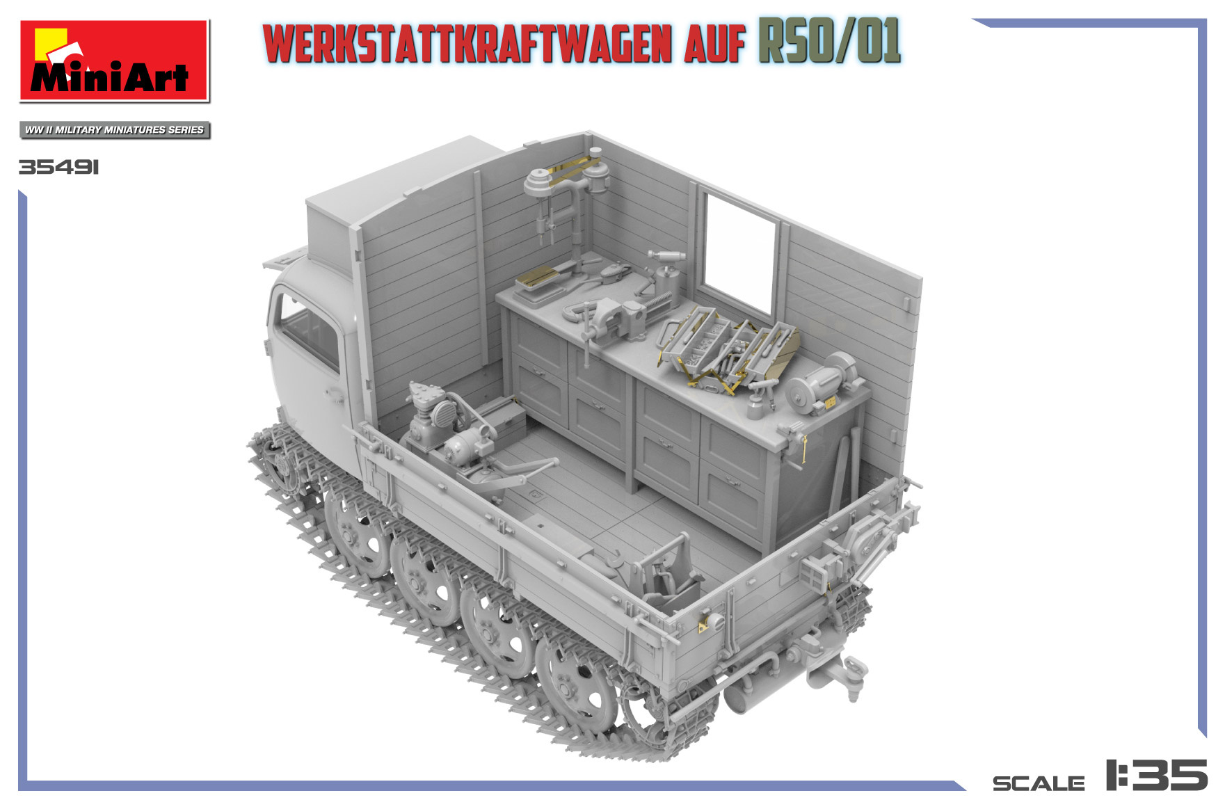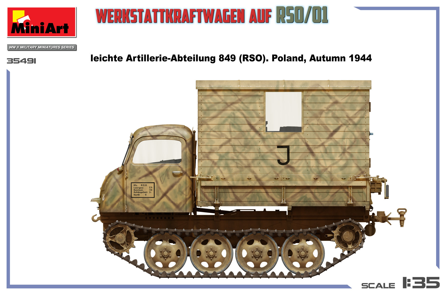 Werkstattkraftwagen auf RSO/01 was a German mobile workshop based on the RSO tracked tractor, developed to support field repairs in difficult terrain. The tracked chassis provided excellent cross-country mobility, while the enclosed workshop body allowed maintenance work close to the front line.