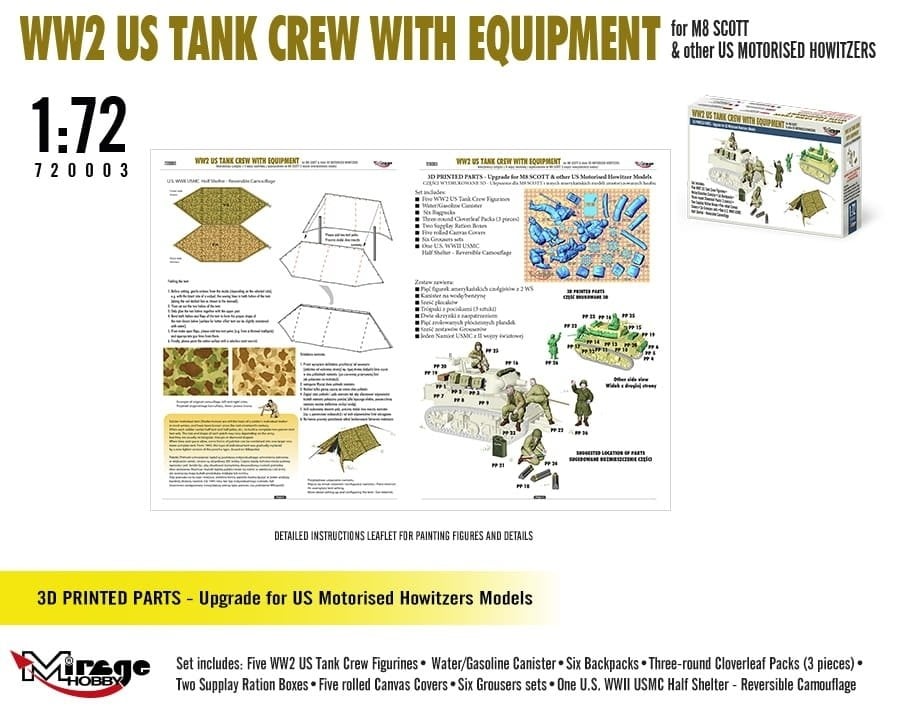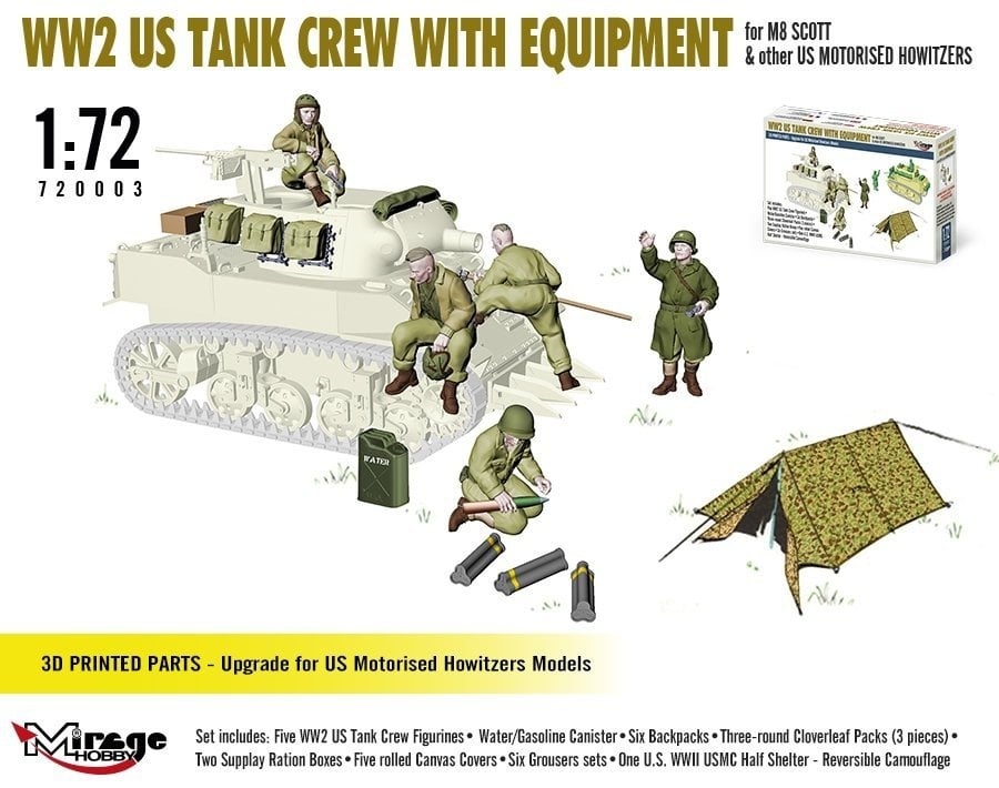 Mirage Hobby - WWII US Tank Crew with Equipment for M8 Scott & other motorised howitzer - 1:72
