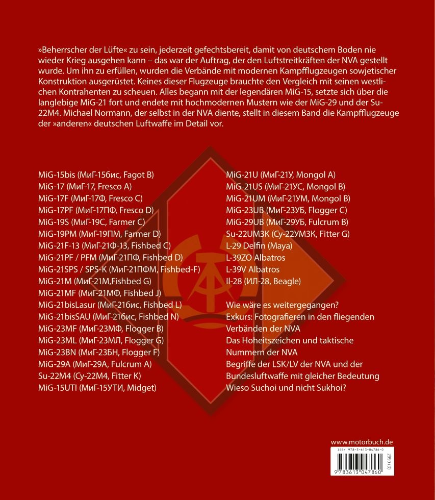 Bis in die späten 1980er-Jahre ging man im Westen wie im Osten davon aus, dass ein möglicher Konflikt sich zunächst auf dem Gebiet der beiden deutschen Staaten entwickeln würde. Entsprechend gut wurden auch die Luftstreitkräfte der NVA materiell durch die Sowjetunion bestückt. So standen von Anfang an Maschinen wie die MiG-15 oder später die MiG-21 bis hin zur seinerzeit hochmodernen MiG-29 in den Beständen der Fliegertruppen. Diese Flugzeuge brauchten den Vergleich zu ihren westlichen Gegenübern nicht zu scheuen. In diesem Band werden die Kampfflugzeuge der »anderen« deutschen Luftwaffe im Detail dargestellt.