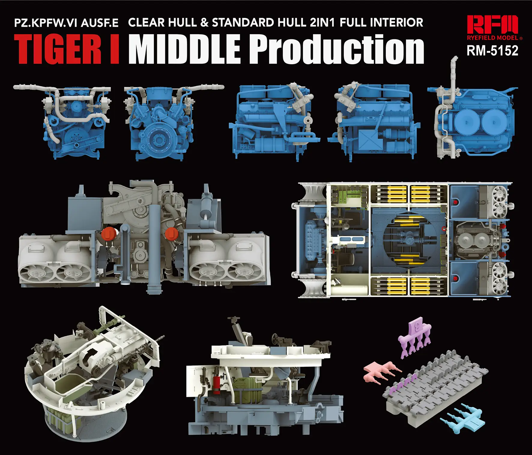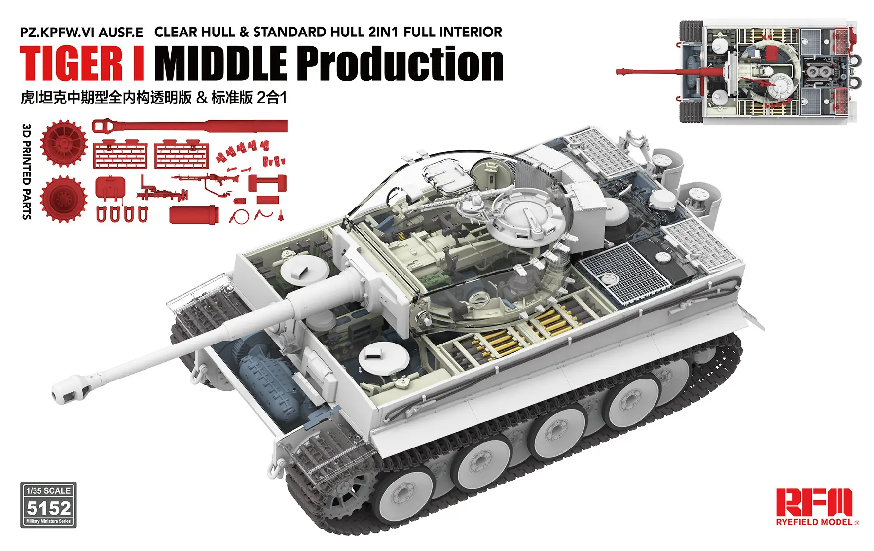 Ryefield Model - Pz.Kpfw. VI Tiger I Mid Production - Clear Hull / Full Interior - 1:35