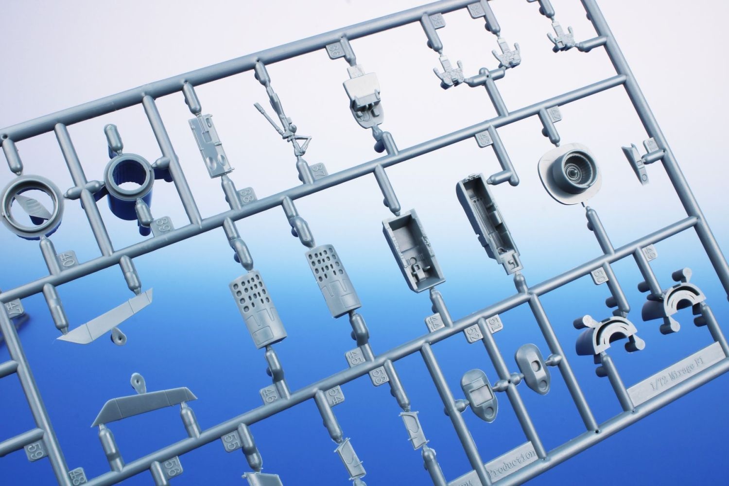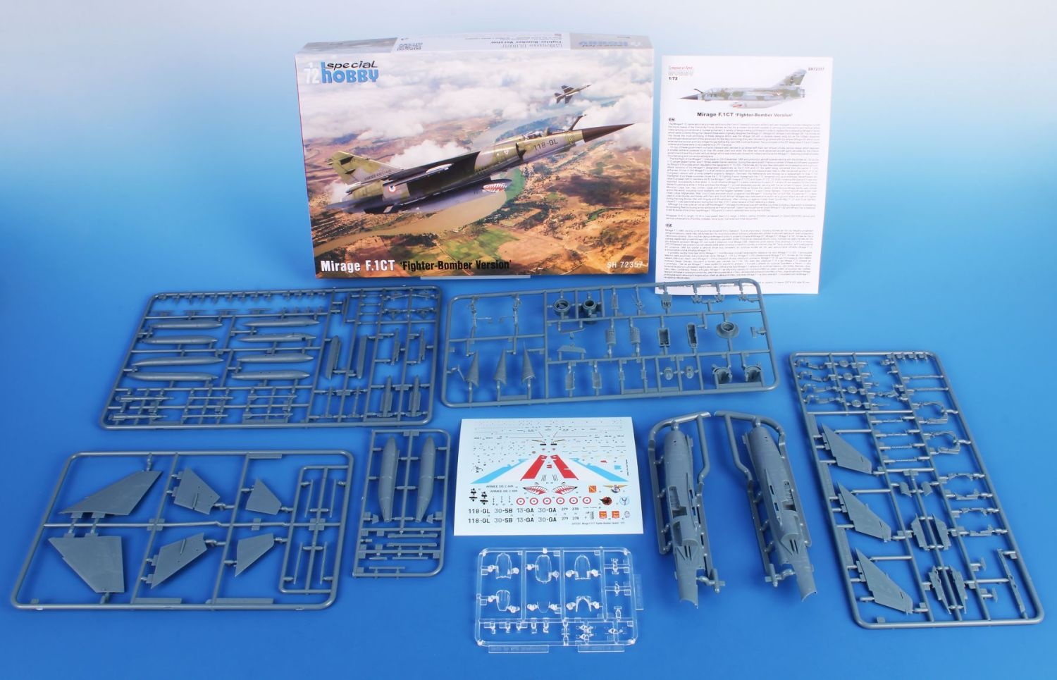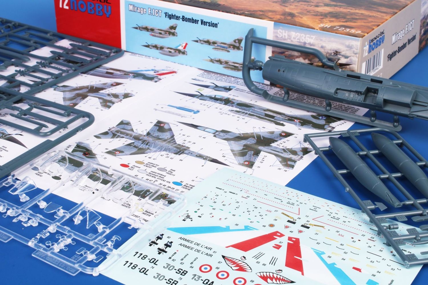 Compared to previous models, this model has one more sprue. A sprue with parts typical for the CT and CR versions has been added, including the Corail decoy launchers and a large belly fuel tank. The decals offer four French machines, each from a different unit. Two machines flew in France, one was deployed in Chad and one in Kosovo.