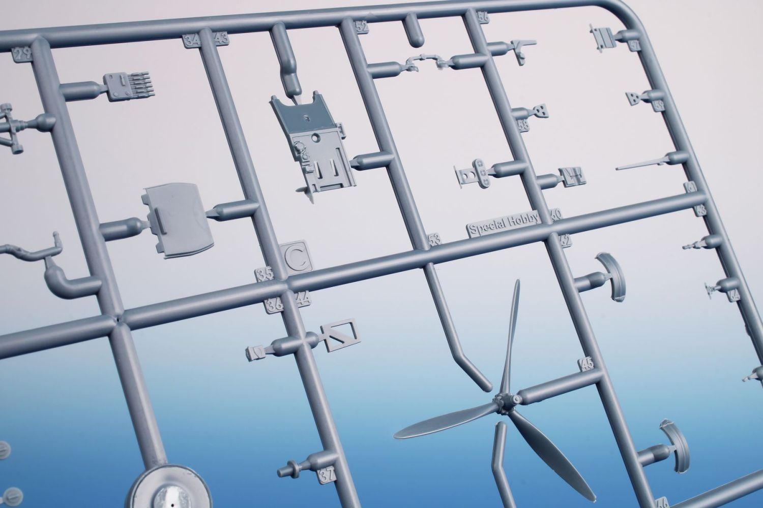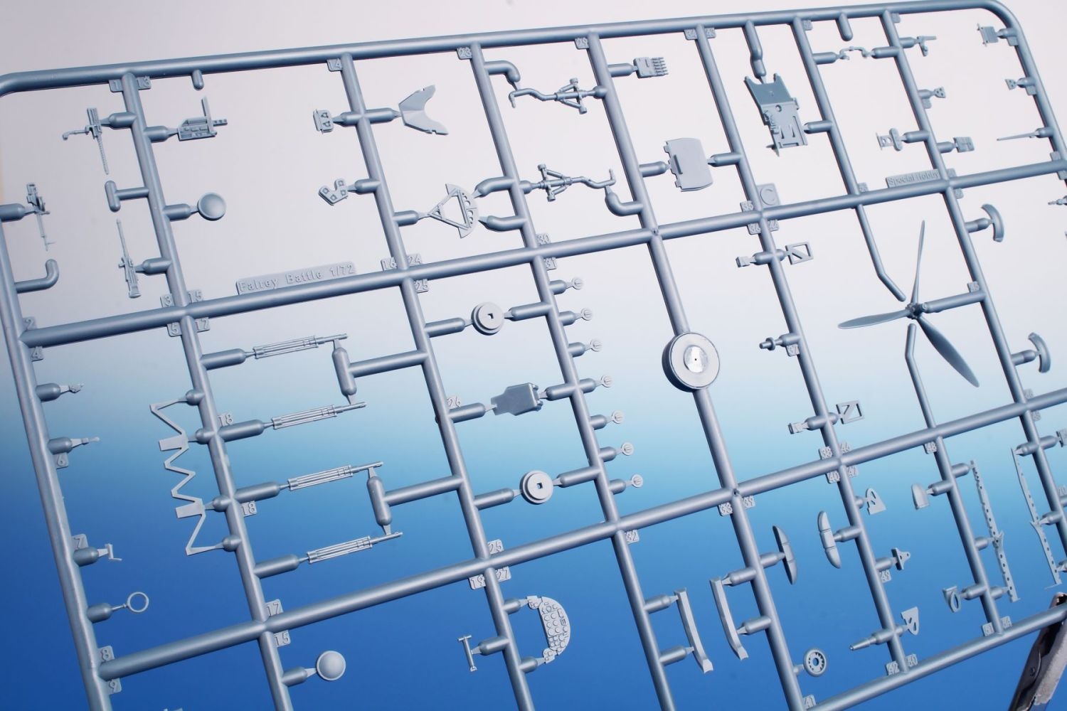 Three sprues of plastic parts are joined with a sprue of clear parts and decals. The decal sheet offers four RAF aircraft that were lost in Western Europe in May 1940 with interesting and colourful history of their crews.