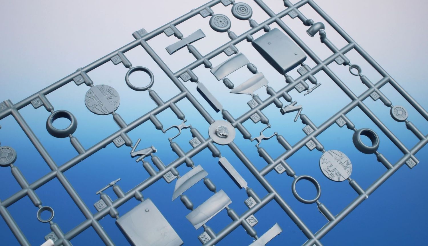 The kit comes with three grey plastic sprues and one sprue with clear parts. The decal sheet bring markings for two war-time machines and two operated in the post war era. One of the war planes flew in Belgium in March 1945, wearing a special white colour scheme while the other one had a standard disruptive scheme. The same colours also featured on one of the post war Meteors, the fourth one is depicted in the natural metal scheme.
