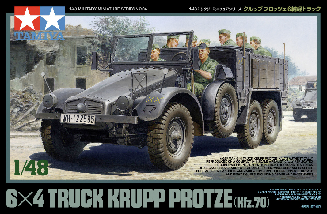 Das Standmodell ist eine Nachempfindung des deutschen Lkw Krupp Protze. Der Lkw war im Volksmund unter dem Namen Boxer bekannt, weil er über einen Vierkant-Flachmotor verfügte. Dies wiederum ermöglichte eine flach abfallende Motorabdeckung von unverwechselbarer Form, die auch eine hervorragende Sicht nach vorne und eine niedrige Silhouette bot. Neben dem luftgekühlten Motor verfügte der "Boxer" auch über ein eigenständiges Federungssystem, das sich von den herkömmlichen Federsystemen anderer Sechsräder im deutschen Einsatz unterscheidet. Die TAMIYA Modellbaukastenversion besticht durch Passgenauigkeit als auch durch Detailtreue.