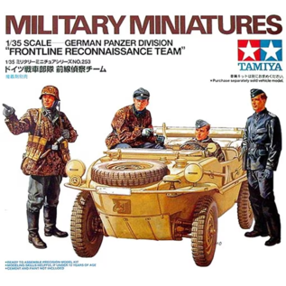 This is a 1/35 scale plastic assembly kit of WWII German tank crew figures which is perfect for displaying with German vehicles such as the K?belwagen and Schwimmwagen. The set contains 4 figures in realistic pose, including a field commander sitting on the door, a seated driver, a grenadier leader pointing forward, and a tank commander wearing a leather jacket. In addition, the package side features a road sign illustration from the Ardennes front which can be used in the creation of dioramas.
