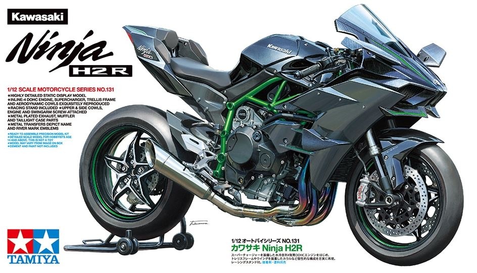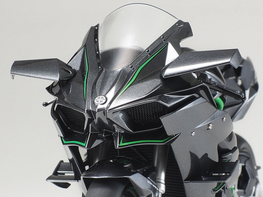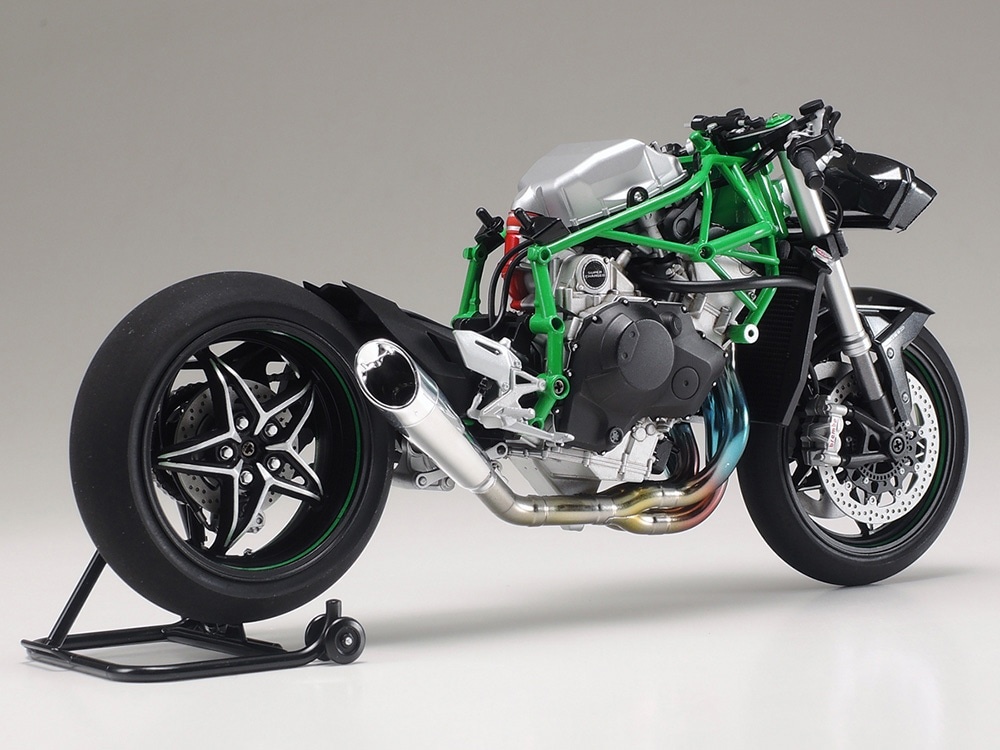 From a show-stopping debut at the INTERMOT show in Cologne in 2014 to later reports of a top speed over 400km/h, the Ninja H2R closed course motorcycle has never been far from the headlines. Its Japanese maker Kawasaki aimed to provide hitherto unexperienced acceleration in its development, going about it by teaming up a 300hp-plus liquid-cooled 998cc inline-4 engine with a centrifugal supercharger, and mounting them in a tubing trellis frame. Four carbon fiber wings on the sleek, angular cowls provide not only an aesthetic treat but also stability at the Ninja H2R's extreme speeds, while the bike boasts cutting edge tech such as traction control, engine brake control, a quick shifter and more. Don't miss your chance to build this expertly molded model of a mold-breaking bike!