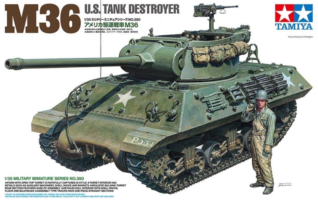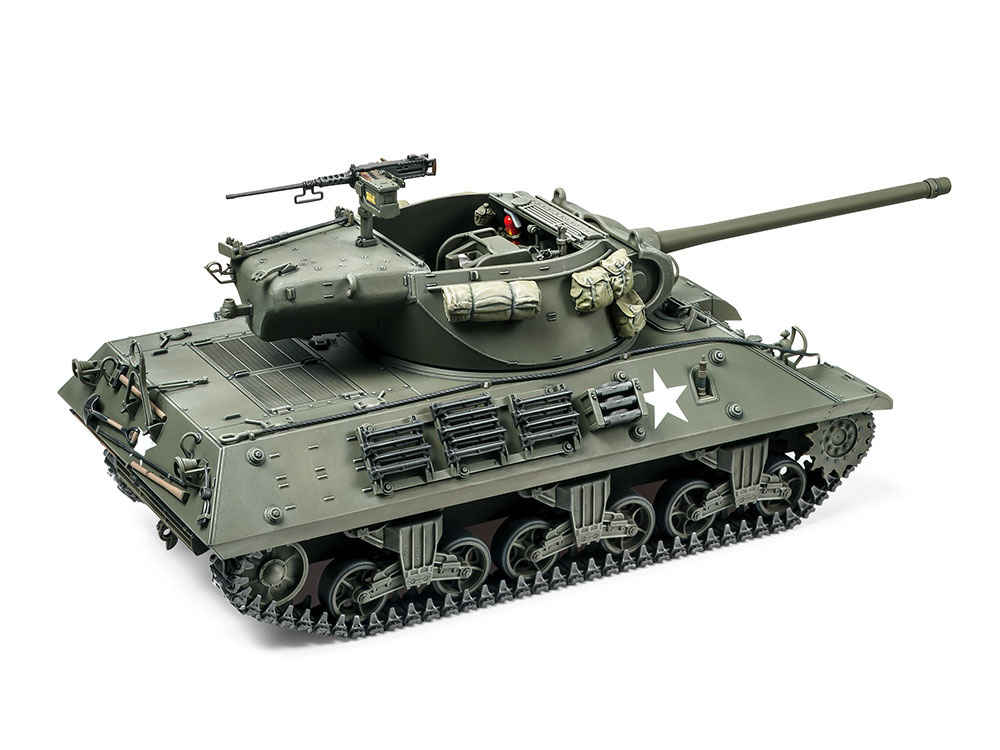 The 1/35 Military Miniature series welcomes the M36, a U.S. tank destroyer which made its combat debut in October 1944 and played a significant role in the Battle of the Bulge that December, accounting for a number of German tanks. The open top form of the M36 is captured with accuracy. The turret interior has detailed depictions of the gun breech, sights and more. The slide molded counterweight on the turret rear offers great realism balanced by ease of assembly. Marking options include a winter camouflage scheme.
