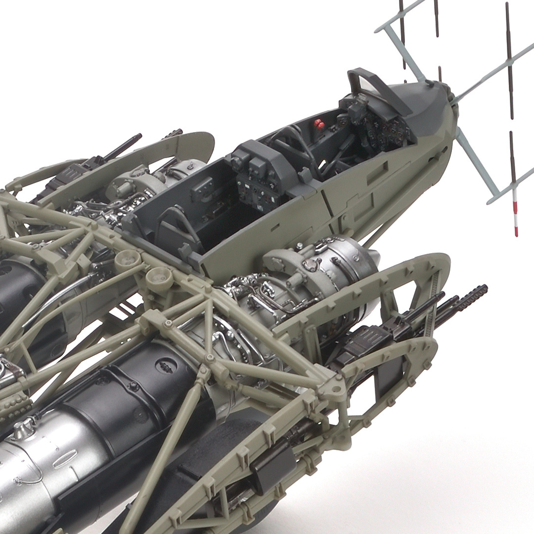 From a young age, the Horten brothers were fascinated by gliders and flying wing aircraft. Under the guidance of Dr. Lippisch, designer of the Me 163, they pursued flying wing prototypes, culminating in the formal adoption of the Ho 229. Although several high-performance variants were planned, none saw combat before the war ended. Among these, the two-seat night fighter was considered the most practical. It featured a narrow tandem cockpit, with a radar operator seated in the rear, and a FuG 220 Lichtenstein radar antenna mounted on the nose, same as the He 219, for night interception.